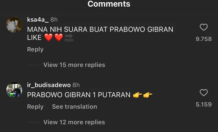 "MANA NIH SUARA BUAT PRABOWO GIBRAN LIKE," tambah @ksa4a_.